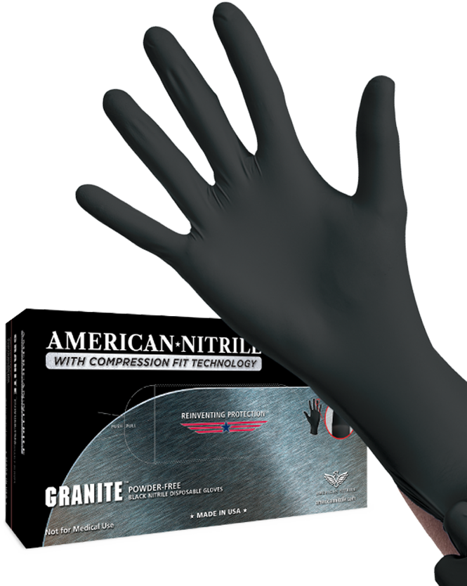 Protect your hands with confidence using our American made black nitrile gloves, designed for heavy-duty performance without sacrificing comfort. These 6 mil thick gloves provide superior puncture and chemical resistance, making them ideal for commercial cleaning and industrial applications.